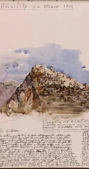 Eccezionali documenti storici di Castelcivita conservati negli archivi privati presso l'Accademia Nazionale dei Lincei di Roma. Si tratta di due disegni fatti del prof. Architetto Paterna Baldizzi, in occasione della visita dell'architetto a Castelcivita nell'anno 1908 per fare un censimento delle opere e arredi sacri di valore artistico.